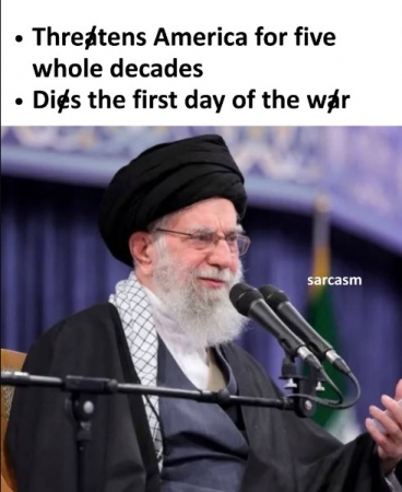 এই লোকটা বছরের পর বছর ধরে প্রকাশ্যে আমেরিকা ও ইসরাইলের ধ্বংস চেয়ে আসছে, তাদের যেখানে পাওয়া যাবে সেখানেই হত্যা করার মত ভয়ঙ্কর হুমকি দিয়ে আসছে; অথচ যুদ্ধ শুরুর সাথেই সাথেই চিৎপাটাং হয়েছে। একেই বলে- অন্যের জন্য গর্ত খুঁড়লে সে গর্তে নিজেকেই পড়তে হয়। সাধারণ কোন দেশের রাষ্ট্রনায়ক কখনো প্রকাশ্যে এভাবে কোন দেশের প্রতি হুমকি ধামকি দেয় না ( যুদ্ধাবস্থা ছাড়া ), এ ধরণের হুমকি দেয় সাধারণত সশস্ত্র চরমপন্থী গ্রুপগুলো যেমন- আল কায়েদা, হিজবু্ল্লাহ, হুতি. ইত্যাদি, অথচ এই মোল্লা বছরের পর বছর ধরে একদম প্রকাশে আমেরিকা-ইসরাইলকে থ্রেট করে আসছে, তার পোষা সশস্ত্র বাহিনী দ্বারা মধ্যপ্রাচ্যে হাজার হাজার আমেরিকান নাগরিকদের হত্যা করেছে; যার ফলাফল সে হাতে নাতে পেয়েছে।
