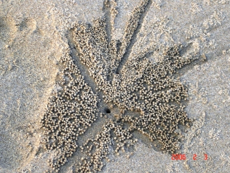বেলাভূমিতে কাঁকড়ার শিল্পকর্ম