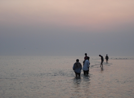 ভাটার সময় আসন্ন হওয়ায় আমাদের পানিতে হাঁটাহাঁটি