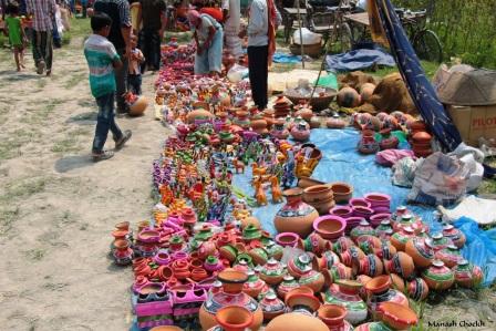 মাটির খেলনা, বাতাসা!!!!! ( প্রায় হারানো), ঠিলা (মাটির কলস) ভরতি কেনা মুখরোচক খাবার ( এখন প্রায় নেই), বাশিঁ আর আের মত বাজে না।। আপাততঃ এই।।