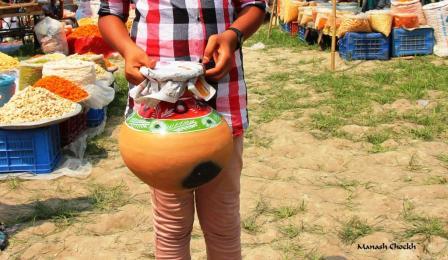 ঠিলা (মাটির কলস) ভরতি কেনা মুখরোচক খাবার