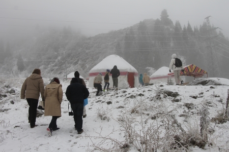 কাল রাত থেকেই আলমাতি শহরে বেশ তুষার ঝরছে। পার্কটি শহরের কাছে হলেও পাহাড়ের ঢালে তাতে আমাদের বেশ কিছুটা উপরে উঠতে হবে। তাপমাত্রা মাইনাস ১০-১২ হতে পারে বলে আমাদেরকে পোষাক পরিচ্ছদে ঐভাবে প্রস্তুতি নিয়ে বের হতে বলা হয়েছে। এই বঙ্গ সন্তান যদিও বরফের রোমান্টিসিজমে ভুগছে তবে শীতে খুবই কাবু। যার মাইনাস তো দূরের কথা মার্চ-এপ্রিল মাসের কাঠমন্ডু আর দার্জিলিং এর তাপমাত্রা তার জীবনের সর্ব নিম্ন তাপমাত্রার অভিজ্ঞতা। কি কি পড়ব আর কি না পরবো এই নিয়ে ভাবতে ভাবতে সাথের সুটকেস উল্টিয়ে শীতের কাপড় যা ছিল সব পড়ে কিম্ভুতকিমাকার হয়ে নিচে নামি।