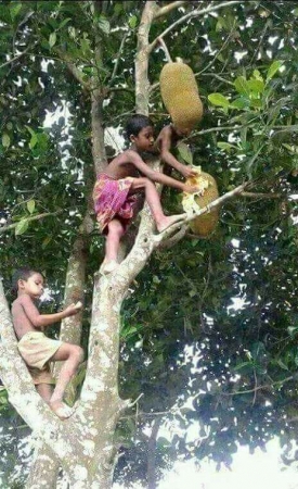 গাছের উপর চলছে কাঁঠাল খাওয়া