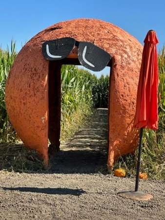 ছবি – ৮ ) “ Cool Patch Pumkins এর Corn Maze” এ ঢুকতে কুমড়ো আকারের ঢোকার পথ।( নেট থেকে)