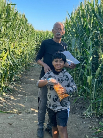 ছবি – ৯) হাতে গোলকধাঁধার ম্যাপ নিয়ে ভাবছি কোন পথে যাবো! সাথে আপাতঃ শান্ত-সুবোধ নাতি।