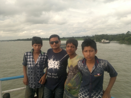চাঁদপুর থেকে ফিরছি ! ছবির তিন মায়াবী শিশু কিশোর আপন তিন ভাই জাহাজের ছাদে আপনমনে বসে গল্প করছিল। কথা বললাম পরিচিত হলাম ছবি তুললাম অনেক গভীর দীর্ঘ নিঃশ্বাস এসেছিল ! একমাত্র কারন হল "মা" ! তারা তিনভাই মিলেমিশে মা এর ড়াকে মা এর অসুস্হতার খবর শুনে মা কে দেখতে যাচ্ছে। মা সৎ বাপের সংসার করছে । সৎ বাপ তাদের মেনে নিতে পারে না। ছোট ভাই মা এর পেটে থাকতে, মঝো জন ৩ বছর এবং বড়জন ৪ বছর বয়সে ড্রাইভার পিতা জেলখানায় অসুস্হ হয়ে মারা গিয়েছিল ! দূরঘটনার মামলায় বিচারের আগেই পিতার মৃত্যু জেলেই হয়। বড় জনের শুধু মনে আছে বাবাকে কবর দেওয়ার স্মৃতি। ছোটদের কিছুই মনে নেই। ছোটভাইয়ের জন্মের ২ বছর পর মা ২য় বিয়ে করে থাকে মুন্সীগন্জে ! আজ তারা মিলেমিশে অসুস্হ মা কে দেখতে যাচ্ছে ! সৎবাপের অগোচরে মুন্সীগন্জ ঘাটে প্রিয় মা কে দেখে মায়া ও আদর নিয়ে আবার রাত ৯টার ষ্টীমারে চাঁদপুরে বুড়ো নানুর কাছে ফিরে আসবে। বলছিল তাদের মা ও বুড়ো নানু ছাড়া আর কেউই নেই ! বলছিল নানুর কাছে তিন ভাই রাত্রে একসাথে ঘুমায় ! দিনের বেলায় বড়জন টমটম চালায়, মেঝোজন গাড়ীর গ্যারেজে কাজ শিখছে এবং ছোটজন ফার্নিচারের দোকানে কাজ করে।