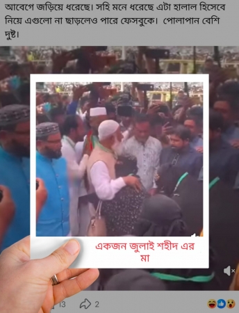 কিন্তু এটাও নিশ্চিত—এই দৃশ্যকে ঘিরে নোংরা রাজনীতি হবে। আমীরে জামাতকে ভিলিফাই করতে গিয়ে শহীদের মাকেও টেনে আনা হবে। এটিই সবচেয়ে নির্মম দিক। যে মা সন্তানের লাশ কাঁধে নিয়েছেন, বিচারহীনতার ভার বইছেন প্রতিদিন—তাকে নিয়েও কাদা ছোড়ার রাজনীতি হবে।