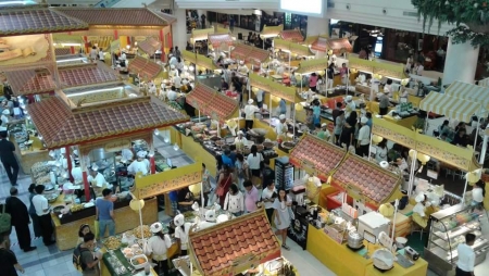 এর নীচের চত্বর জুড়ে দশদিন ধরে চল্লো থাইল্যান্ড এর চৈনিক জনগোষ্ঠীরর বাতসরিক নিরামিষ খাবারের উতসব।