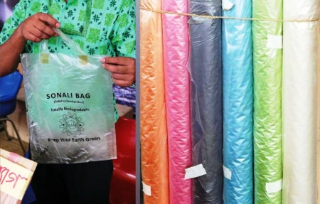 ঠিক এমনি এক সময়ে বাংলাদেশের বিজ্ঞানী ডঃ মুবারক আহমেদ খানের পলিথিনের বিকল্প পাট থেকে সোনালি বাগের আবিষ্কার প্লাস্টিক বর্জনের এক সম্ভাবনাময় দুয়ার খুলে দিয়েছে। তার আবিষ্কার অর্থাৎ প্লাস্টিকের বিকল্প পচনশীল ব্যাগ যা দেখতে এবং কাজে পলি ব্যাগের মতই কিন্তু শতভাগ পরিবেশ বান্ধব।