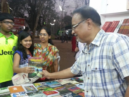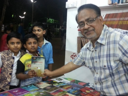 সেদিন বেশ কিছু শিশু কিশোরও আমার বইটির প্রতি আগ্রহ দেখিয়েছিলো। এদের কারো কারো নাম মনে রেখেছি, আবার কারো কারোটা ভিড়ের ডামাডোলে ভুলেও গেছি, তবে ওরা সবাই ছবি তুলে নিয়েছে ওদের কিংবা ওদের বাবা মায়ের সেলফোনে, আমিও আমারটায়। তেমন কয়েকটা ছবি এখানে দিলাম। কুড়িগ্রামের কবি সোহান সরকার এর বই ‘নয়নমনি’ও বিক্রয় হচ্ছিলো একই স্টল থেকে। তার সাথেও নিজ নিজ বই এর সৌজন্য কপি বিনিময় হলো। এমসিসি’র এক্স ক্যাডেট সদা হাসিখুশী শরীফ এলো আমার এবং অন্যান্য এক্স ক্যাডেটদের বই কিনতে। এখানে বলে রাখি যে ‘বইপত্র প্রকাশন’ থেকে এবারে মোট চারজন এক্স ক্যাডেটের বই বিক্রয় হয়েছে। বইমেলায় আমার বইটির সর্বশেষ ক্রেতাছিলেন এ এস এম ইউনুছ। তিনি “বাংলাদেশ স্টাডি ফোরাম (BDSF)” এ কাজ করেন। তার দুই সহকর্মীর সাথে আমাকে পরিচয় করিয়ে দিলেন। তাদের একজনের নাম সুমাইয়া জামান, অপরজন সাবিদিন ইব্রাহীম, যিনি একজন সদালাপী, সদা হাসিখুশী সজ্জন ব্যক্তি, সেটা মনে রেখেছি। আরও মনে রেখেছি যে তিনি একজন খ্যাতিমান অনুবাদক। অনুবাদ সাহিত্যে তার বেশ কিছু ভালো কাজ রয়েছে। তিনি ঢাকা বিশ্ববিদ্যালয়ের ইংরেজী বিভাগে এবং সুমাইয়া পালি এন্ড বুদ্ধিস্ট স্টাডিজ বিভাগে পড়াশোনা করেছেন। ইউনুছ সাহেব বেশ আলাপী লোক। তিনি BDSF এর পরবর্তী কোন একটা আলোচনায় গেস্ট স্পীকার হিসেবে অংশগ্রহণের জন্য আমাকে আগাম আমন্ত্রণ জানিয়ে রাখলেন।