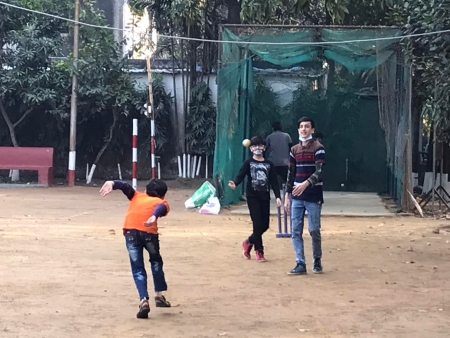 কেউ কেউ টেনিস বল দিয়ে ক্রিকেট খেলছে।