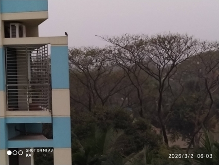 তখন সময় ভোর ০৬-০৩। সূর্য উঠতে তখনও ২৬ মিনিট বাকি। দূরের বিলবোর্ডে তখনও নিয়ন বাতি জ্বলছে। এরই মধ্যে এক জোড়া পাখি নিকটস্থ গাছ-গাছালির নীড় ছেড়ে সামনের ছয় তালা দালানের কার্নিশে এসে বসলো। ছবি তোলার জন্য সেলফোনটা হাতে নিতে নিতে একটা ফুরুৎ করে উড়ে চলে গেল।