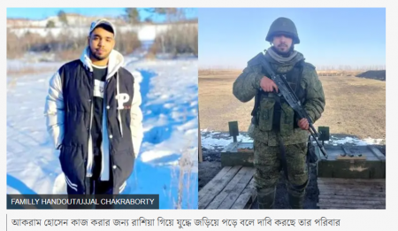 আকরাম রাশিয়া গেল। প্রথম কয়েক মাস কাজ করল একটা চায়না কোম্পানিতে। ওয়েল্ডিং করত। বেতন তেমন না হলেও পরিবারে কিছু টাকা পাঠাতে পারত। সংসারে স্বস্তি ফিরেছিল। কিন্তু হঠাৎ একদিন কোম্পানির লোকজন আকরামকে মারধর করা শুরু করল। খাবার দেওয়া বন্ধ করে দিল। একদিন কয়েকজন এসে তাকে জোর করে একটা কাগজে সই করাল। রুশ ভাষায় লেখা। আকরাম কিছু বুঝল না। তাকে বলা হলো, "এটা চুক্তিপত্র। তুমি রাশিয়ান সেনাবাহিনীতে যোগ দিয়েছ।" আকরাম আঁতকে উঠল। "কী বলছেন? আমি তো ওয়েল্ডার! আমি যুদ্ধে যাব কেন?" কিন্তু কেউ শুনল না। তাকে বলা হলো, "তোমার আর ফিরে যাওয়ার উপায় নেই। যুদ্ধ করতেই হবে।" পরিবার জানতে পারল। মা মোবিনা বেগম কাঁদতে কাঁদতে বললেন, "আমার ছেলে যুদ্ধে যাবে কেন? ওকে ফিরিয়ে আনো!" কিন্তু কে শুনবে?