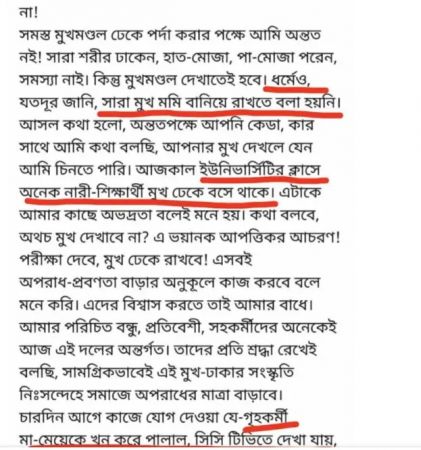 ক্যাম্পাসে মুখমণ্ডল ঢাকা থাকার ফলে যে বাস্তব প্রশাসনিক সমস্যাগুলো তৈরি হয়, তা এড়িয়ে যাওয়া অসম্ভব। পরীক্ষায় একজনের পরিবর্তে অন্যজন অংশগ্রহণ করা বা জালিয়াতির ঘটনা ঠেকানো শিক্ষকদের জন্য এক দুঃসাধ্য চ্যালেঞ্জ হয়ে দাঁড়িয়েছে। পরিচয় নিশ্চিত করার এই যৌক্তিক দাবিকে যখন 'পর্দার ওপর আঘাত' হিসেবে প্রচার করা হয়, তখন বুঝতে হবে আমরা যুক্তিবর্জিত এক অন্ধকারের দিকে ধাবিত হচ্ছি। এতে ডিগ্রির গ্রহণযোগ্যতা এবং প্রতিষ্ঠানের শৃঙ্খল : উভয়ই মারাত্মকভাবে ক্ষতিগ্রস্ত হচ্ছে। শিক্ষকরা যখন ভয়ের সংষ্কৃতিতে নিমজ্জিত হন, তখন তারা সত্য বা বিজ্ঞান পড়াতেও দশবার ভাবেন।
