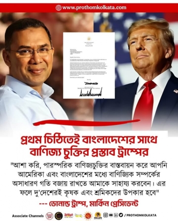 মার্কিন প্রেসিডেন্ট ট্রাম্পের চিঠির বাংলা