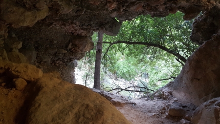 আরো প্রায় আধা ঘণ্টা পড়ে, একটা খোলা জায়গা পাওয়া গেল। এর পড়ে ট্রেইল চিকণ আর রুক্ষ হয়ে সামনে এগিয়ে গেছে। আমরা এগিয়ে যাওয়ার সিদ্ধান্ত নিলাম। প্রায় ১৫ মিনিট এগুনোর পড়ে, একটা ছোট গুহা পেরিয়ে ট্রেইলটা নিচের দিকে নেমে গেছে। এখন আর একে ট্রেইল বলা যাবে না। বরং পাথর আর জংগলের মধ্যে দিয়ে সতর্কতার সাথে পথ খুঁজে নামতে হচ্ছে। নামতে নামতে আমরা সেই নদীটা পেয়ে গেলাম, তবে এখানে পানি পানি অগভীর, স্রোতও অনেক কম।