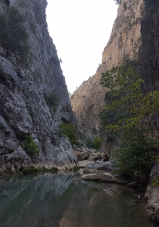 কখনো নদীর পাড় ধরে, কখনো অগভীর পানিতে নুড়ি পাথরের উপরে, আবার কখনো নদীতে থাকা বড় বড় পাথরের উপর দিয়ে আরো কিছুদুর এগিয়ে থামতে হল। অত্যধিক খাড়া দুই পাহাড়ের মধ্য দিয়ে চিকন এক পানির ধারা অনেক দূর পর্যন্ত চলে গেছে যার শেষ কোথায় পরিস্কার বোঝা যাচ্ছে না।