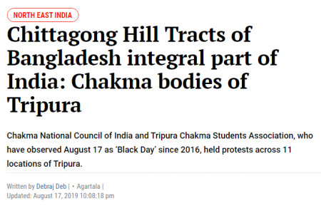 ইন্ডিয়ান এক্সপ্রেস এর ১৭ আগস্ট ২০১৯ তারিখের সংবাদে জানা যায়, চাকমা জাতীয় কাউন্সিল অফ ইন্ডিয়া, ত্রিপুরার রাজ্য সহ-সভাপতি অনিরুদ্ধ চাকমা বলেছেন,