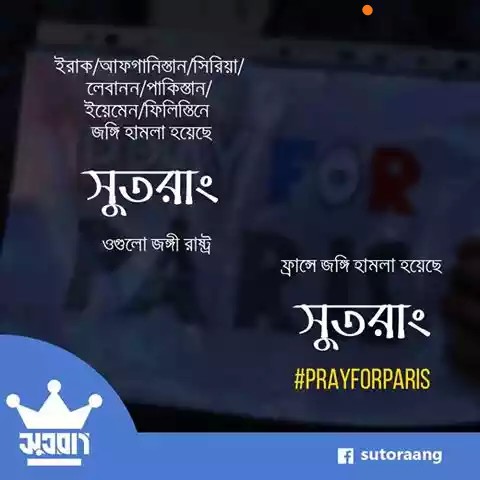 সেটা না হলে, ফ্রান্সের পতাকার বহু আগেই ফেসবুক সয়লাব হতো ইরাক, আফগানিস্থান, ফিলিস্তিন, সিরিয়া, মায়ানমার কিংবা আফ্রিকার শোষিত নীপিড়িত দেশগুলোর জাতীয় পতাকায়।
