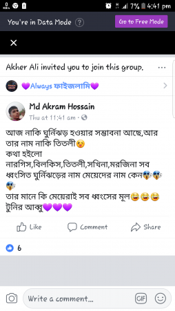 এবার আর নারীর নাম নয়, সামনে একটা ঘূর্ণিঝড় আসতেছে তার নাম গাজা!!" ![]()