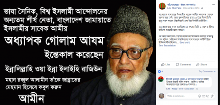 সর্বশেষ: তিনি তার সেই পোস্টটিতে এডিট করেছেন, খলিফাতুল মুসলিমীন হযরত আলী রাদিআল্লাহু তাআলা আনহু উম্মুল মুমিনীন হযরত আয়িশা রাদিআল্লাহু তাআলা আনহার সৎ পিতা ছিলেন, উদ্ভট এই তথ্যটি তার পোস্টে এখন আর নেই।