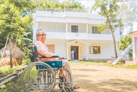 নিজের বাড়ির সামনে ছড়াকার সুকুমার বড়ুয়া। ছবি, অন্তর্জাল থেকে সংগৃহিত।