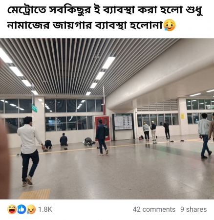 মসজিদ থাকার কথা। কিন্তু না মেঠো*** মতো কিছু বক ধার্মিকদের এখন মেট্রোস্টেশন মসজিদের জায়গা লাগবে। ইহাই দেশে ইসলামীদের চিত্র। এদেশে এক শ্রেণীর আলেম-ওলামা ধর্মকে নিজ প্রয়োজনে ব্যবহার ফলে শিক্ষিত মানুষেরা দিনে দিনে ধর্ম বিমুখ হয়ে পড়ছে। এমন হাজারো উদাহরণ আছে, আর বেশি বড় করলাম না।