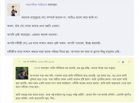 আপনি বলেছেন, "আপনের সাথে আর প্যাচাল পারার টাইম নাই। আউলিয়াগিরি চালায়া যান। যা কইলাম, ভালো কইরা চিন্তা কইরেন। বিদায়। "