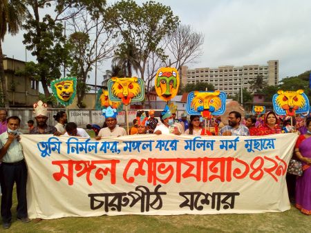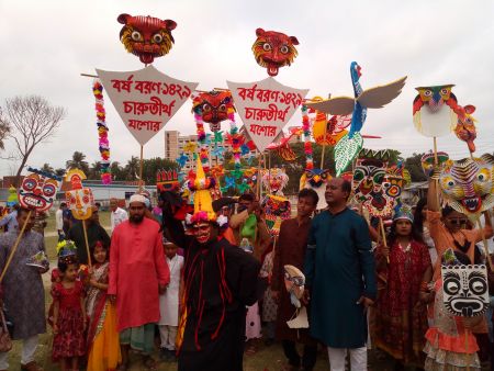 করোনার কারণে গত দুবছর যশোরে তেমন কোন অনুষ্ঠান হয়নি।বহুদিন বাদে এ বছর আবার অনুষ্ঠানের আয়োজন হল যশোর জেলা প্রশাসন ও নববর্ষ উদযাপন পরিষদ যশোর এর যৌথ উদ্যোগে।সম্ভবত সকাল সাড়ে ছয়টা থেকেই যশোর টাউন হল ময়দানে অনুষ্ঠান শুরু হয়েছিল ঘুম থেকে উঠতে দেরি হয়ে গিয়েছিল তাই পৌঁছাতে পৌঁছাতে দেরি হয়ে গেল। পুলিশ চেকপোস্ট পেরিয়ে ভিতরে ঢুকে দেখি মহাসমারোহে অনুষ্ঠান চলছে।অনেকক্ষণ ধরে অনুষ্ঠান উপভোগ করলাম। কিছু ছবি তুলে মঙ্গল শোভাযাত্রার উদ্বোধনের পর পরই বাসায় ফিরে এলাম ততক্ষণে রোদ ভীষণ চড়ে গেছে।