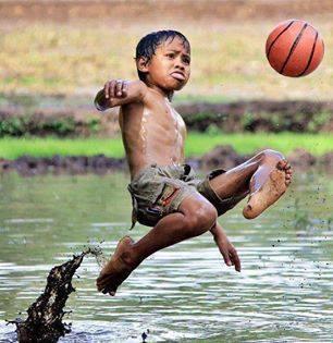 বৃষ্টির পানি জমে গেল মাঠ জুড়ে । সর্ব শক্তি দিয়ে কিক করেও কেউ বল বেশি দূরে নিতে পারতেছিল না ! সব খেলোয়াড়েরা বলকে ঘিরে ঠেলাঠেলি, একে অন্নের পারে লাথি ! মাঝখান থেকে কেউ একজন বল হাতে নিয়ে গোল পোষ্টের উদ্দেশ্যে দৌড় ! নাই কোন ফাউল, নাই কোন হ্যান্ডবল !