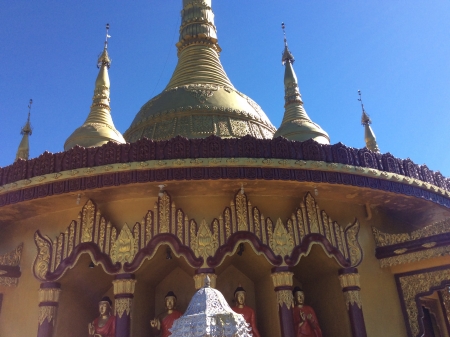 হিল ভীউ থেকে মেঘলা না গিয়ে প্রথমেই গেলাম স্বর্ন-মন্দীরে মাত্র ৪ কিলোমিটার দূরে।যারা এস এ অলীকের হৃদয়ের কথা সিনেমাটা দেখেছেন,তারা জায়গাটি নিশ্চই চিনতে পারবেন।এই মন্দিরে আদৌ কোন সোনার প্রলেপ আছে কিনা ,সেটা আমি উদ্ধার করতে পারিনি। মন্দিরটি দেখেতে সোনালী রঙের হওয়ায় সবাই একে স্বর্ণ মন্দির নাম আখ্যায়িত করে।প্রায় ৫০ ফুট উঁচুতে অবস্থিত এই মন্দিরে কোন এক বৌদ্ধ এসে উপাসনা করেছিলেন সেই থেকে এর গুরুত্ব অনেক বেড়ে গেছে।সাদা টাইলস দিয়ে বিছানো পুরো মন্দির,সবাইকেই খালি পায়ে উঠতে হয়।আর মূর্তি গুলোকে ছুঁয়ে দেখা নিষেধ থাকলেও দু’একটার গায়ে হাত লাগানোর লোভ সামলানো সত্যি কঠিন।মন্দিরের বাইরের অংশে ভিন্ন ভিন্ন প্রকোষ্ঠে তিব্বত, চীন, নেপাল, ভিয়েতনাম, কম্বোডিয়া, ভূটান, মায়ানমার,কোরিয়া, জাপান ইত্যাদি দেশের শৈলীতে সৃষ্ট ১২টি দন্ডায়মান বুদ্ধ আবক্ষ মূর্তি এখানে নতুন মাত্রা যোগ করেছে।এমন চমৎকার কারুকার্য যারা করতে পারে তাদের মনের ভেতর অসাধারন কল্পনা প্রবনতা আমাকে সত্যি ঈর্ষান্বিত করে।দুপুরের ঠাঁটা পড়া রোদ একদম মাথায় ,তবু আমার ক্যামেরার ক্লিক ক্লিক থামেনা।এখানে দাঁড়িয়ে পুরো শহরকেই একসাথে ফ্রেমে বাঁধা যাচ্ছে- পূর্বদিকে বান্দরবান শহর ও চারপাশে শুধু পাহাড় আর পাহাড়। মায়ানমার থেকে শিল্পী এনে এটি তৈরি করা হয়। এইসব উপাসনালয়ে এলেই মনে কেমন প্রশান্ত হাওয়া বয়ে যায়।প্রত্যেকটা বৌদ্ধ মূর্তিতে আলাদা রকম আবেদন আছে।আমাদের দীর্ঘ মেয়াদী ফটোসেশন শেষ করে চলতে শুরু করলাম মেঘলা পর্যটন কেন্দ্রের পথে।