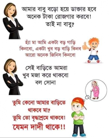 আমরা নিজেরা কি মা বাবা হবোনা একদিন? আমার বাবা মাও একদিন কারো সন্তান ছিলো। তাই নিজের পিতাকে মাতাকে কেমন করে যত্ন করবো। এটা কেন বলে দিতে হবে? আমরা না বদলাতে পারলে দেশ জাতি কি করে বদলাবে