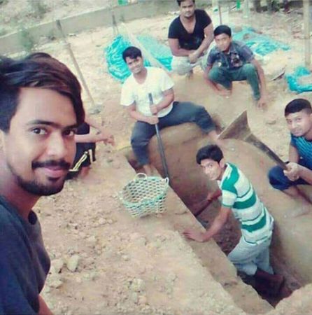 বড় ভাই ছোট বোনের মৃত্যুর পর তার কবর খননের মুহূর্ত ধরে রেখেছেন সেলফি তুলে।