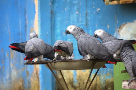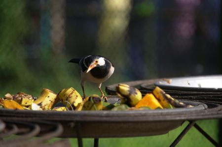 পাখিদের সামনে বিভিন্ন রকম খাবার সাজিয়ে রাখা।