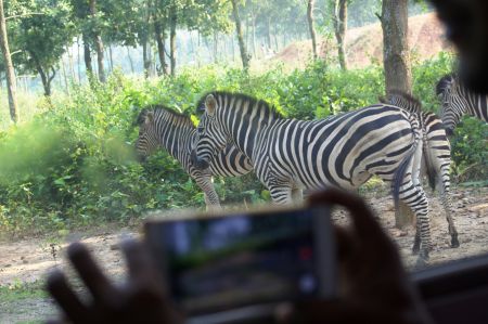 এরপর ওয়াইল্ড লাইফ বাঘ, সিংহ, হরিন, হাতি , জেব্রা, বন গরু, ভালুক ইত্যাদি দেখার জন্য একশো টাকা দিয়ে টিকিট কেটে বাসে করে ঘুরে ঘুরে দেখার জন্য যখন লাইনে এসে দাঁড়িয়েছি, তখন সামনে প্রায় নব্বইজন মানুষ দাঁড়িয়ে আছে। একটা বাস থেমে আছে বাসে উঠতে পারবেন ২০ জন যাত্রী, এর পরের বাস কখন আসবে ঠিক নেই! কমপক্ষে ২ ঘণ্টা লাগবে উঠতে ভেবে আমি মনের সুখে আইস্ক্রিম খাইতে খাইতে দেখি বাসের কন্টাক্টর দূর থেকে তিন আঙ্গুল ইশারা করলেন মানুষজনের দিকে ফিরে , কেউ কিছু বোঝে নাই বলে নাকি কে জানে সব চুপ করে দাঁড়িয়ে আছে দেখে আমি আঙ্গুলের জবাবে দুই আঙ্গুল দেখাইতেই আমাকে ও আমার বন্ধুকে ডেকে বাসে তুলে নিলেন আমার জায়গা হল ড্রাইভারের পাশের সীটে সবার সামনে। বিশাল গ্লাস থাকায় বেশ কিছু ছবি তুলতে পারলাম।