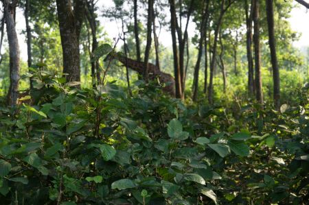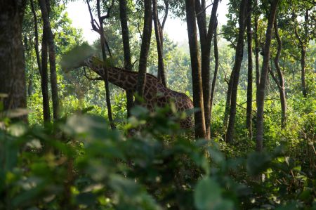 এরপর দেখলাম জিরাফ, উনি কাছে আসেন নাই , গভীর জঙ্গলে গাছের পাতা খেতে ব্যস্ত ছিলেন ।