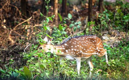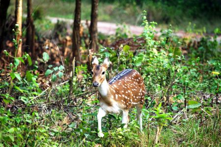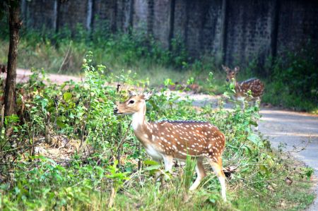 সুন্দরী চিত্রা হরিন ও আমাদের সামনে রাস্তায় নেমে এলো