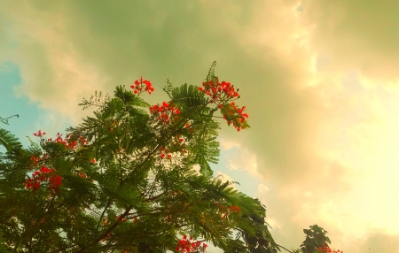 কৃষ্ণচূড়া ও মেঘের আকাশ