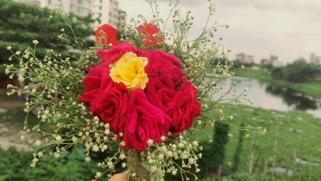 বুনো ফুল আর গোলাপ ফুলের মিক্সড তোড়া