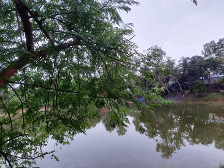 বিশাল পুকুর পাড়ে সবুজের ছোঁয়া যেন হাতে আঁকা ছবি, শান্ত চলনবিলের তীরে উত্তাল বাতাস,বর্ষার মৌসুমে বিল ভরে ওঠা