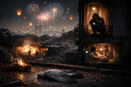 আমরা যখন আকাশের বুক চিরে আতসবাজির শব্দ আর আলোর ঝলকানি দেখে আনন্দে মেতে ওঠি, তখন সেই আকাশে দিনমান উড়ে বেড়ানো পাখিদের পৃথিবীটা ওলটপালট হয়ে যায়। প্রচণ্ড শব্দ আর আগুনের ঝলকানিতে আতঙ্কিত হয়ে পাখিরা দিকবিদিক জ্ঞানশূন্য হয়ে উড়তে থাকে। অন্ধকারে তারা দালানের কাচ বা বৈদ্যুতিক তারে ধাক্কা খেয়ে মাটিতে লুটিয়ে পড়ে। পরদিন সকালে রাস্তার ধারে পড়ে থাকা সেই নিথর দেহগুলো আমাদের উৎসবের বীভৎস সাক্ষ্য দেয়। তারা তো কথা বলতে পারে না, তাই হয়তো তাদের এই নীরব কান্না আমাদের কানে পৌঁছায় না।