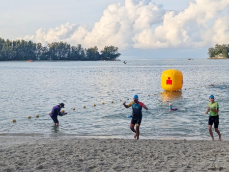 এক ঘন্টা লাগলো 'ডানা লানকাউই'- তে পৌঁছাতে, তখনো আকাশে আলো ফুটেনি। শাটল বাস একেরপর এক আসছে প্রতিযোগী আর তাদের সঙ্গী সারথীদের নিয়ে। রেইসের সময় মোবাইল ফোন বা ক্যমেরা ব্যবহার এর অনুমতি নেই তাই সঙ্গী সাথীদের কাছে অনেকে তা রেখে যাচ্ছে যেনো কাছাকাছি দেখা পেলে ছবি তুলতে পারে। গতকাল যেখানে সাইকেল রেখে এসেছিলাম প্রথমে সেখানে চলে গেলাম। বৃষ্টি হয়েছে রাতে, সাইকেল ভালোমতো মুছে চেইনে লুব দিলাম। হাওয়া কিছুটা কমিয়ে দিয়েছিলাম, যেনো রোদে অতিরিক্ত গরমে টিউবের ক্ষতি না হয়। রাফাত বড় পাম্পার নিয়ে এসেছে সেটা দিয়ে সবার কাজ হয়ে গেলো। সবার সাইকেল কাছাকাছি জায়গায় ছিল তাই একে অন্যের সহোযোগিতা করতে সুবিধে হলো। ফ্লাডলাইট এর আলো আর লাউড মিউজিক শরীর মনকে চনমনে রাখার উপাদেয় হলো। সময় কমে আসছে, মাইকে বার বার বলা হচ্ছে ইলেকট্রনিক চিপ পেয়ে গেলে ধীরে ধীরে সমুদ্র সৈকতের স্টার্টিং পয়েন্ট এর দিকে চলে আসতে। গোধূলির আলো ফোটার পরেই প্রথম ব্যচ সাঁতার শুরু করবে। আমার ক্যাপ এর রঙ নীল, সময় ৫০ মিনিট। লাল রঙের ক্যাপ যারা তাদের আরো দশ মিনিট কমে সাতার শেষ করতে হবে। আর সাদা ক্যাপ যাদের তারা সময় পাবে ১ঘন্টা ১৫মিনিট। গ্যাপ দিয়ে দিয়ে প্রতিযোগীদের পানিতে নামতে হবে নাহলে ভজঘট লেগে যাবে। একে অন্যের গায়ের উপর পড়বে বা হাত-পা লেগে ইঞ্জুরি হবার চান্স আছে।