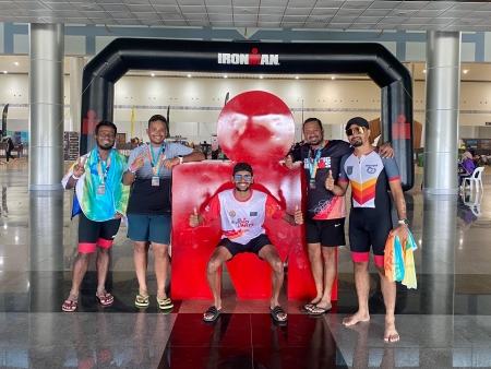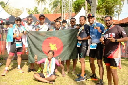মুসুরি এক্সিবিশন সেন্টার এর কাছে এসে বেলাল ভাই এর দেখা পেলাম। তিনি রাস্তা ভূল করে ২০কিমি অতিরিক্ত চালিয়ে ফেলেছেন এবং আয়োজকরা পেনাল্টিতে অপেক্ষারত রেখেছেন। এক ঝলকে তার আর্তনাদ শুনলাম, "দেখেন ভাই আমাকে আটকে রেখেছে"। তিনি এই লানকাউইতেই আরো কয়েকবার আয়রনম্যান সম্পন্ন করেছেন, তারপরও রাস্তা কিভাবে ভূল হয় এটাই ভেবে পেলামনা। আসলে রেইসের সময় অনেক কিছুই হতে পারে, সব ঘটনার জন্য মানসিক ও শারীরিক প্রস্তুতি নিয়ে রাখতে হবে। বেলাল ভাই আরো ২০কিমি বেশি মোট ২২০ কিলোমিটার সাইকেল চালিয়ে এরপর আবার কাটঅফ টাইমের মধ্যে ৪২কিমি রান করে আয়রনম্যান শেষ করেছিলেন। এক্সিবিশন সেন্টার এ প্রবেশ করে মনটা শান্ত হলো। হিমশীতল হাওয়ায় লাল গালিচার মধ্যে দিয়ে হেটে যেতে বেশ রাজকীয় মনে হলো নিজেকে। সাইকেল টি-টু এর স্থানে রেখে রান এর ব্যাগ থেকে ক্যাপ, বিব আর দেশের পতাকা নিলাম। মজা পাল্টে নিলাম। শীতল হাওয়া ছেড়ে বের হওয়া মাত্রই বুজতে পারলাম দোযগে প্রবেশ করেছি। বেলা একটা বেজে গেছে, মাথার উপর প্রখর সূর্য এর মধ্যে দৌড়ে যেতে হবে ২১কিমি। পুলিশ ট্রেনিং একাডেমির রাস্তা ধরে এয়ারপোর্টের দিকে ট্রেক চলে গেছে। রানওয়ে বলতে গেলে উন্মুক্ত, এক পাশে প্লেন উড়ে যাচ্ছে অন্যপাশে সমুদ্র, কি সুন্দর দৃশ্য। কিন্তু এই গরমে দৌড়াতে দৌড়াতে দৃশ্য যে হজম হয়না। তপ্ত রোদে এই দৌড় শেষ হলেই এই যাত্রায় পরীক্ষায় পাশ। গরমের জন্য সব ব্যবস্থা তারা করে রেখেছেন। ৩কিলোমিটার পর পর হাইড্রোশন পয়েন্টে বরফ ঠান্ডা পানি বালতি দিয়ে ঢেলে দিলো, ঠান্ডা তরমুজ সাজিয়ে রাখা গপাগপ খেয়ে নিলাম। কোক রাখা আছে ইনিস্ট্যান্ড এনার্জি আর জেল তো ছিলই। রানির শুরুর সময়ই জেল খেয়ে নিলাম। মেডিকেল বুথ থেকে মাসেলে স্প্রে করে জামার ভেতর বরফ ঢুকিয়ে দিলো। এত জল শরীরে যাওয়ার পরেও দেখছি মূত্র বিসর্জনের কোন খোঁজ নেই। শরীরে অসস্থি শুরু হয়ে গেছে। ঘড়ির দিকে তাকিয়ে দেখলাম দৌড়ের গতি কমতে থাকলে আট ঘন্টার মধ্যে শেষ করা কঠিন হয়ে যাবে। শহরের মধ্যে দিয়ে দুইবার পাক খেতে হয়, চারপাশের দোকানীরা সবাই রাস্তায় নেমে ঘন্টা বাজাচ্ছে আর আমাদের চিয়ারআপ করছে। মন আবার চাঙা হয়ে উঠলো। ১০কিলোমিটার রান শেষে সতির্থদের সাথে দেখা হওয়া শুরু হলো। নাহিদ, রাফাত, সৌরভ দা, আতাউর ভাই আমাকে ক্রস করে যাচ্ছে। তারা আমার আগেই ফিনিশ লাইনে পৌঁছে যাবে। আমি এবার আরেকটু গতি বাড়িয়ে দিলাম। পা যেনো চলতেই চাইছে না। একপাক ঘুরে এসে লেংগুরা বিচের কাছে ফিনিশ লাইনে পৌঁছে একটু দ্বিধায় পড়ে গেলাম। ঘড়ি দেখে মনে হচ্ছিল আমারত এখন দৌড় শেষ হবার কথা না। ভলেন্টিয়াররা ঠিক পাশ দিয়ে রস্তা দেখিয়ে দিলো এরপর বুজলাম আরো এক চক্কর একি পথে ঘুরে আসতে হবে, যা খুবই বোরিং। একটা পিংক কা