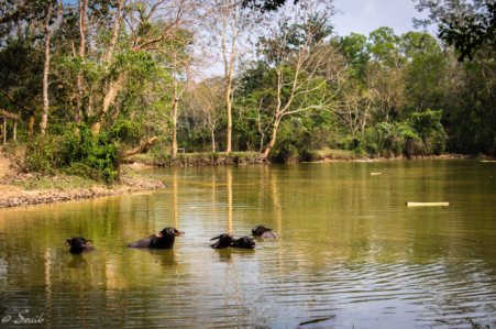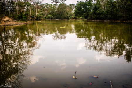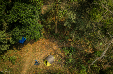 প্রচন্ড গরম, ক্লান্তি, ক্ষিদে তিনে মিলে জঙ্গলে দৌড়ে যাবার ইচ্ছাকে দমন করে পাশের হোটেলে ঢুকতে বাধ্য করল। এখানে ভাত মাছের কোন কারবার নেই। সিঙারা, পুরি, কেক, বিস্কুট, চা – এই হতে যাচ্ছে আমাদের আগামী ২ দিনের খাবার। এতকিছুর ভাবার অবকাশ নেই। ঘুরতে এসেছি, খেতে না। পর পর চারটা সিঙারা আর এক কাপ চা পেটে চালান করে দিয়ে টিকেট করে ঢুকে পড়লাম গেটের ভেতরে। রাতে ক্যাম্প করার জন্য বন কর্মকর্তাদের পারমিশন নিতে হবে। কিন্তু সে বিকালে যখন রাতের খাবার কিনতে আসবো তখন এসেও জানানো যাবেখন। আপাতত জঙ্গলে ঢুকে তাবুটা বিছিয়ে একটু বিশ্রাম না নিলেই নয়। বন বিভাগের অফিস, বিজিবি’র ক্যাম্প, স্থানীয়দের বসত-ভিটা, কটেজ ছাড়িয়ে প্রায় মিনেট বিশেক হেঁটে ঘন জঙ্গলে ঢুকে পড়লাম। এখানে একটা পানির লেক আছে। মূলত বন্য প্রানীদের পানি খাবার জন্য কৃত্রিমভাবে এটি তৈরী করা হয়েছে। পাশেই একটা টিলার উপরে রয়েছে একটা পর্যবেক্ষন টাওয়ার। এখান থেকে এক-দেড় কিলোমিটার দূরে বর্ডার। এটাই ক্যাম্প করার জন্য সবচেয়ে উপযুক্ত মনে হল। ওয়াচ টাওযারের পাশে একটু খালি যায়গায় তাবু ফেলে চিৎ হয়ে শুয়ে পড়লাম। কিন্ত এ সুখ খুব বেশিক্ষন স্থায়ী হলো না। মাথার উপরে গনগণে সূর্যের প্রতাপে বাইরে বেড়িয়ে আসতেই হলো।