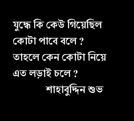 শাহাবুিদ্দন শুভ বলেছেন: আমি কোটা বিরোধী নই। তবে ৫৬ % এর বিরোধী।