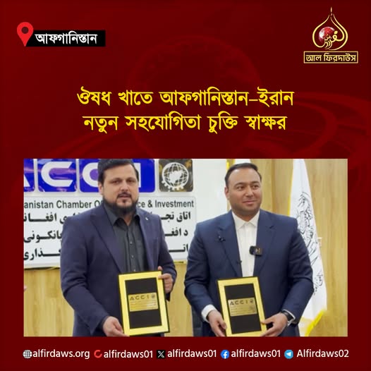 ইমারতে ইসলামিয়া আফগানিস্তানের বালখ প্রদেশের চেম্বার অফ কমার্স অ্যান্ড ইনভেস্টমেন্ট জানিয়েছে যে আফগানিস্তান ও ইরানের মধ্যে ঔষধ শিল্প খাতে একটি সহযোগিতা চুক্তি স্বাক্ষরিত হয়েছে।