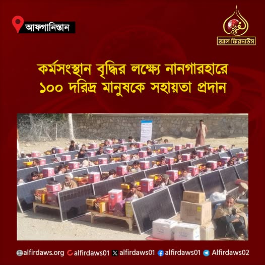 ইমারাতে ইসলামিয়ার নানগারহার প্রদেশের কোট জেলায় স্থানীয়ভাবে কর্মসংস্থান বৃদ্ধি ও দরিদ্র জনগোষ্ঠীকে স্বনির্ভর করার লক্ষ্য নিয়ে ১০০ জন অসহায় ও অভাবী ব্যক্তিকে ছোট ব্যবসার সুযোগ করে দেওয়া হয়েছে।