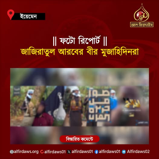 আল-কায়েদা জাজিরাতুল আরব (আরব উপদ্বীপ) সংশ্লিষ্ট জামা’আত আনসারুশ শরিয়াহ্ (একিউএপি)। সম্প্রতি আল-মালাহিম মিডিয়া কর্তৃক দলটির মুজাহিদদের দৈনন্দিন জীবন ও কার্যক্রম নিয়ে একটি প্রচারণামূলক ফটো রিপোর্ট প্রকাশ করেছে। রিপোর্টের ১৯টি ইমেজে ফুটিয়ে তুলা হয়েছে আরব উপদ্বীপের ইয়েমেনে একিউএপি’র মুজাহিদদের দৈনন্দিন ইবাদত, জিহাদ, রিবাত ও মাঠ পর্যায়ের কার্যক্রমের স্থিরচিত্রগুলো।