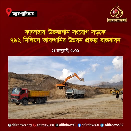 ইমারাতে ইসলামিয়া আফগানিস্তানের গণপূর্ত মন্ত্রণালয়ের তত্ত্বাবধানে কান্দাহার প্রদেশের শাহওয়ালীকোট–তারিনকোট সংযোগ সড়কের নির্মাণকাজ শুরু করা হয়েছে। ১৪ জানুয়ারি, বুধবার প্রকাশিত এক বিবৃতিতে এ তথ্য প্রকাশ করা হয়।