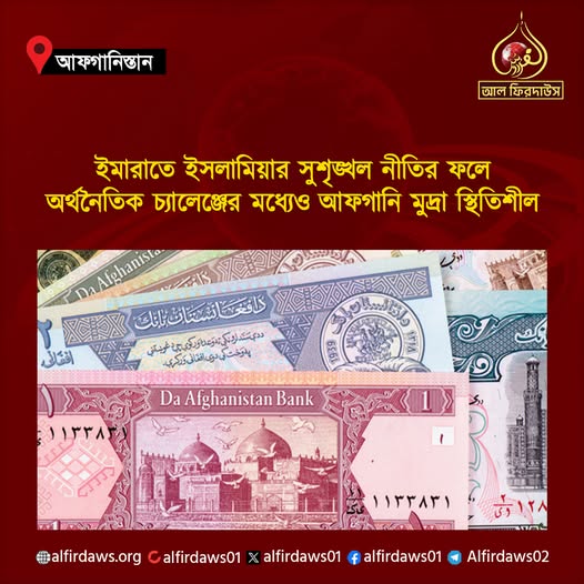 অর্থনৈতিক বিশ্লেষকদের মতে, কঠিন আন্তর্জাতিক ও আঞ্চলিক বাস্তবতার মধ্যেও আফগানি মুদ্রার এই স্থিতিশীলতা ইমারাতে ইসলামিয়ার সুশাসন, দৃঢ় সিদ্ধান্ত ও শৃঙ্খলাপূর্ণ আর্থিক ব্যবস্থাপনার প্রতিফলন। এই স্থায়িত্ব শুধু মুদ্রা বাজারেই নয়, বরং সামগ্রিক অর্থনৈতিক আস্থার ক্ষেত্রেও একটি গুরুত্বপূর্ণ ভিত্তি তৈরি করেছে।